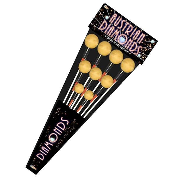 Kugelraketensortiment – auserlesene, brilliante Goldregeneffekte und brilliant schimmernde Farbeffekte.
